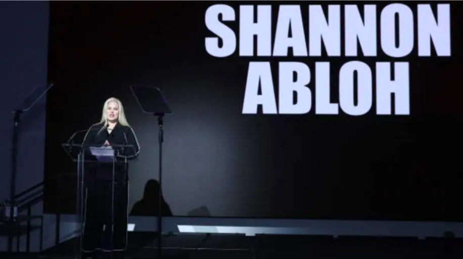 Shannon Abloh speaks onstage during The Fashion Scholarship Fund 85th Annual Awards Gala. (Photo by Bennett Raglin/Getty Images.) GETTY IMAGES FOR FASHION SCHOLAR