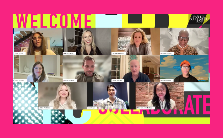 FSF’s Executive Director Peter Arnold opened the evening by calling it “my favorite virtual event of the FSF year,” and reminded the audience that these four represent the highest scores in each discipline out of 160 total Scholars. Each Scholar conceived of a collaboration between a fashion brand and a company outside the fashion sector and built the idea on brand fluency, commercial logic, and discipline-specific expertise.